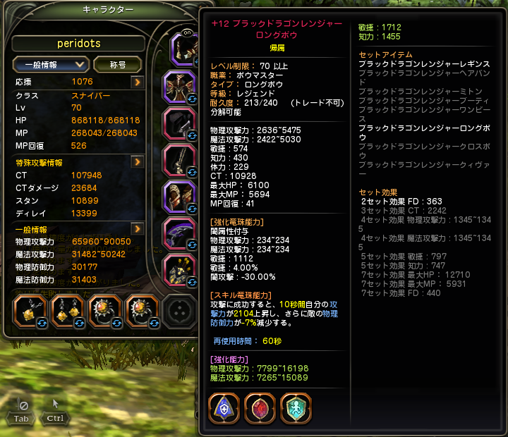 さてそんな70キャップの最終ステータスを紹介したいと思います。